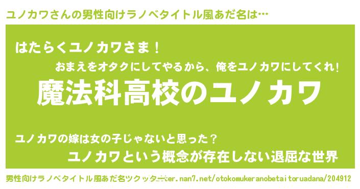 | 女子向けラノベタイトル風あだ名 | 『ユノカワアンティーク』 |