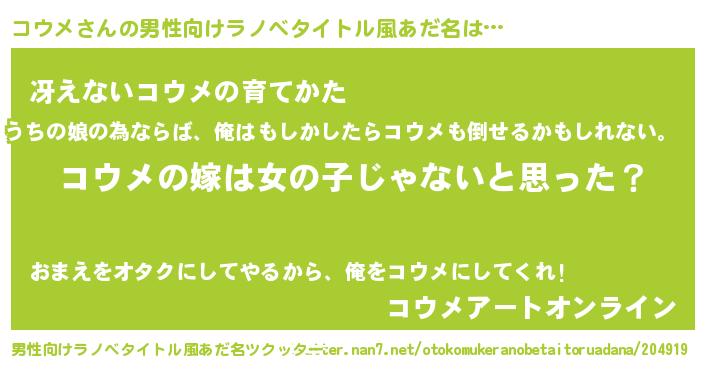 | 意味不明あだ名 | 『とにかく怪しいコウメ』 |