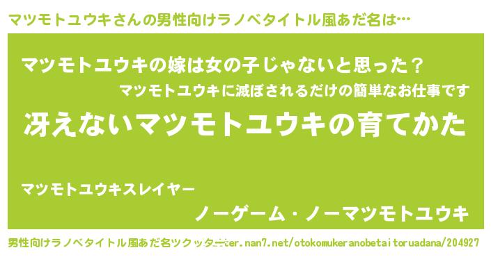 マツモトユウキさんの男性向けラノベタイトル風あだ名をツクッター!