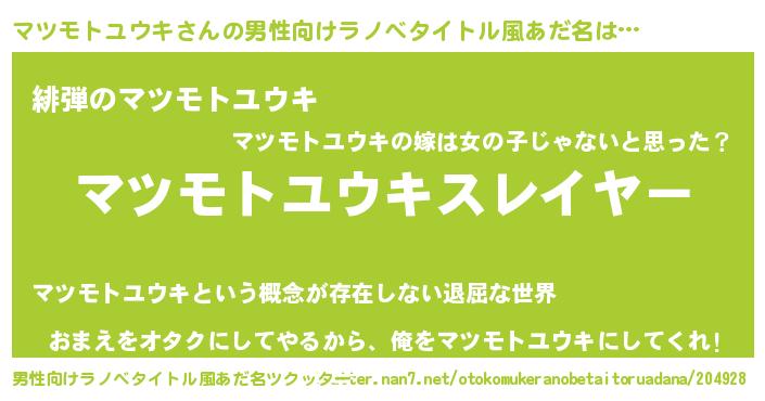 | ヘコむあだ名 | 『マツを』『マツモトユウキ(笑)』 |