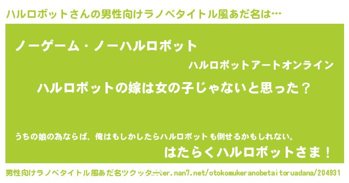 | ヒーロー風カッコイイあだ名 | 『幻影騎士ハル』『スーパーハルロボット』 |