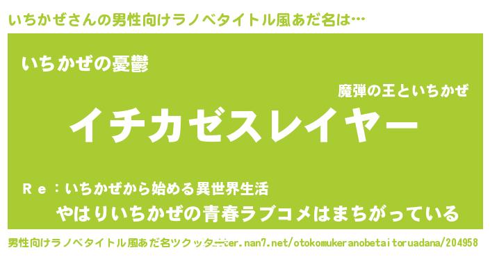 | 肩書あだ名 | 『いちかぜ中佐』『いちかぜ店長』 |