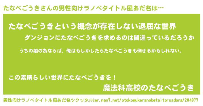 | 意味不明あだ名 | 『たなべごうきフォーエバー』 |