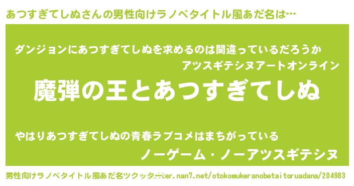 | 女子向けラノベタイトル風あだ名 | 『あつすぎてしぬが死なない童話 林檎のあつすぎてしぬの診療簿』 |