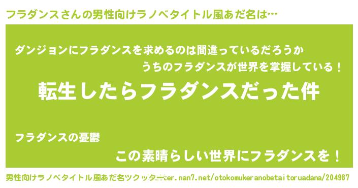 | ヒーロー風カッコイイあだ名 | 『幻影騎士フラ』『仮面フラダー』 |