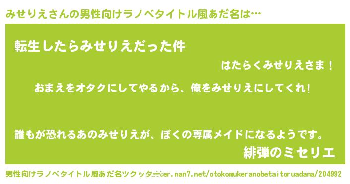 | ヘコむあだ名 | 『みせりえ(苦笑)』『みせふぇ~』 |