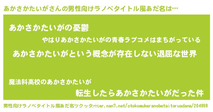 | ヘコむあだ名 | 『あかさかたいが(笑)』『あかにー』 |