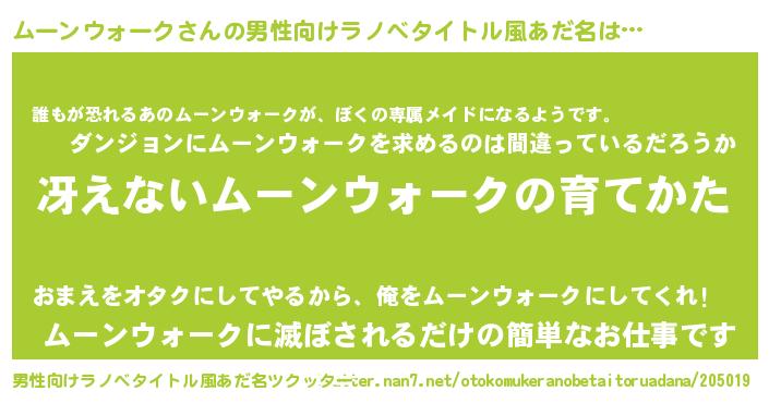 | 胡散臭い通販商品みたいなあだ名 | 『来世でも幸せになれる水素水…その名も「ムーンウォーク」』 |