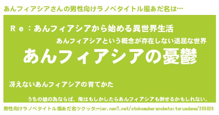 | 胡散臭い通販商品みたいなあだ名 | 『必ず成功する霊験あらたかなお札…その名も「あんフィアシア」』 |