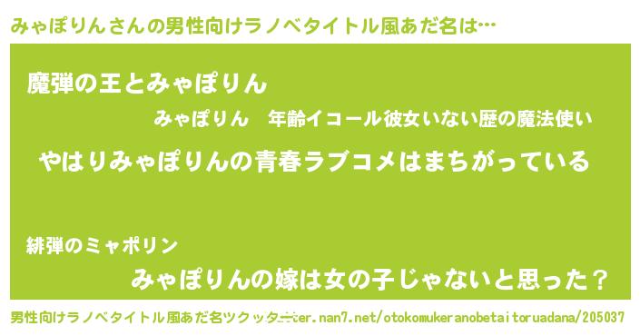 | 女子向けラノベタイトル風あだ名 | 『みゃぽりんの雑貨屋さん』 |