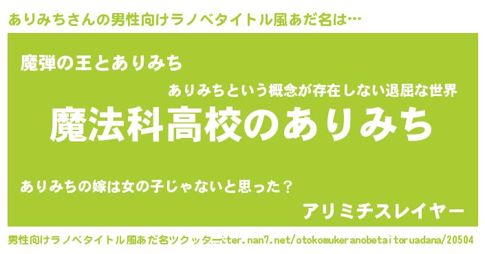 | 女子向けラノベタイトル風あだ名 | 『ありみちなんてお断りですっ。』 |