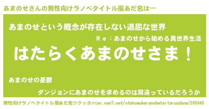 | 胡散臭い通販商品みたいなあだ名 | 『絶対に幸福をもたらす水素水…その名も「あまのせ」』 |