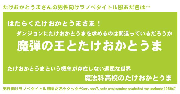 | 意味不明あだ名 | 『住所不定無職たけおかとうま(41歳)』 |
