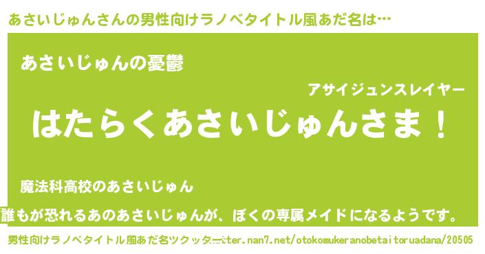 | 胡散臭い通販商品みたいなあだ名 | 『必ず成功する水晶球…その名も「あさいじゅん」』 |
