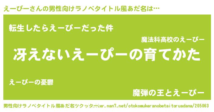 | 女子向けラノベタイトル風あだ名 | 『シンデレラえーぴー家の靴箱館』 |