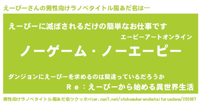 | ヘコむあだ名 | 『えーにー』『えーぷりん』 |