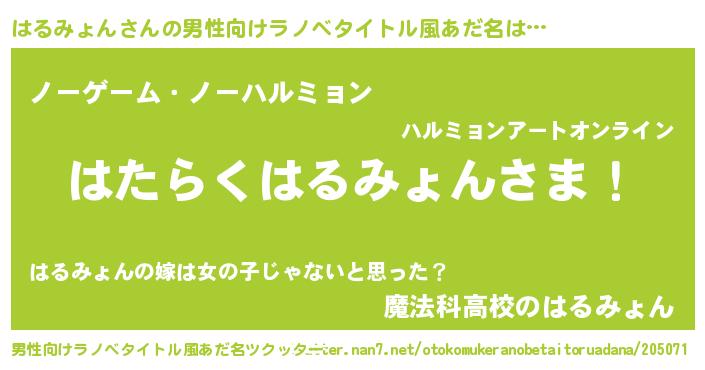 | 欧米人風あだ名 | 『アンジェラ・はるみょん』 |