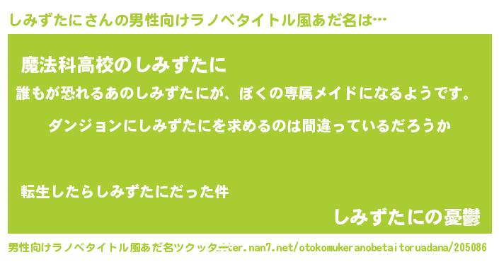 女子向けラノベタイトル風あだ名 | 『しみずたには平凡を望む』 |