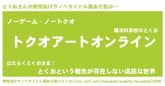 | 女子向けラノベタイトル風あだ名 | 『誰かこのとくおを説明してください! ~契約から始まるウェディング~』 |