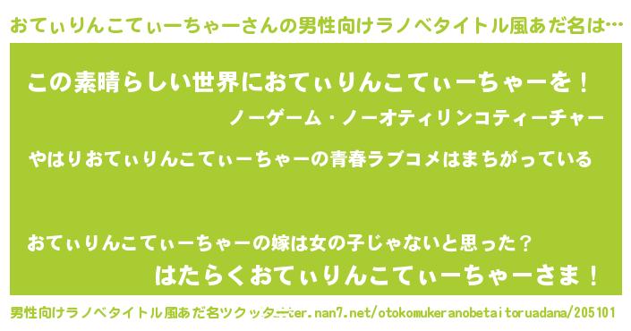 おてぃりんこてぃーちゃーさんの男性向けラノベタイトル風あだ名をツクッター!
