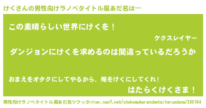 | 胡散臭い通販商品みたいなあだ名 | 『信頼と実績のネックレス…その名も「けく」』 |
