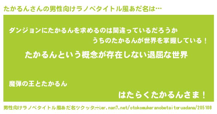 | 胡散臭い通販商品みたいなあだ名 | 『絶対に幸福をもたらす健康食品…その名も「たかるん」』 |