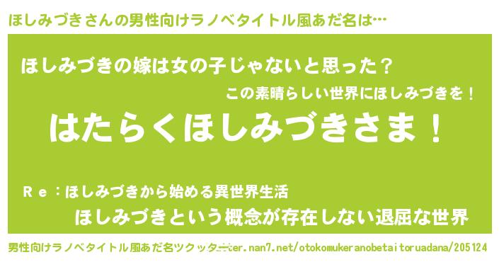 | ポケモン風あだ名 | 『ホシゴンZ』『ヒホシミヅキ』 |