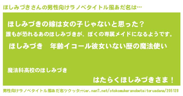 | 女子向けラノベタイトル風あだ名 | 『ほしみづきの玉の輿計画!』 |