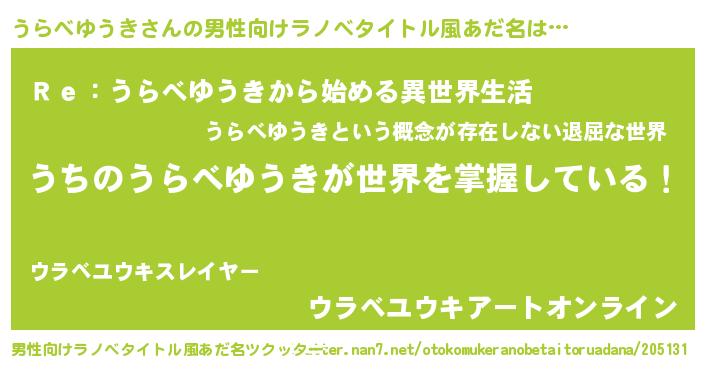 | 意味不明あだ名 | 『自称うらべゆうき』 |