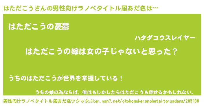 | 女子向けラノベタイトル風あだ名 | 『はただこう様がみてる』 |