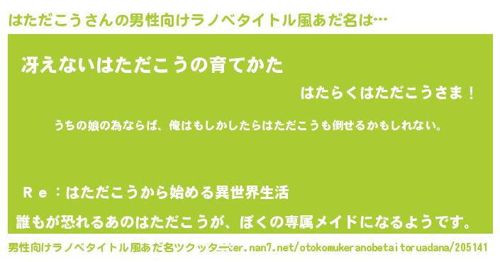 | 女子向けラノベタイトル風あだ名 | 『はただこうの婚約者』 |