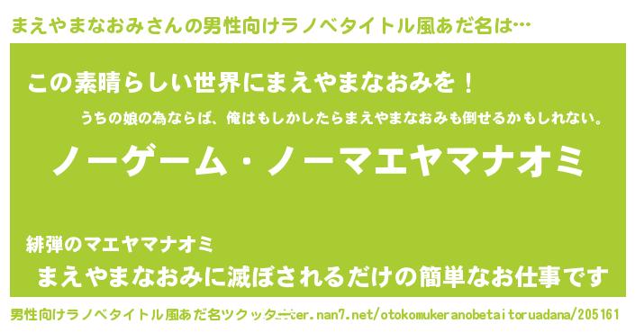 | 女子向けラノベタイトル風あだ名 | 『まえやまなおみ恋絵巻』 |