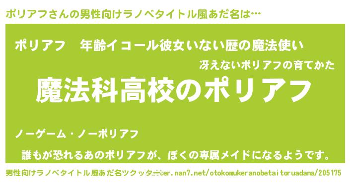 | ヘコむあだ名 | 『ポリアフ(笑)』『ポリにー』『豆乳』 |
