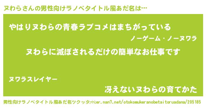 | 意味不明あだ名 | 『ヌわらフォーエバー』『自称ヌわら』 |