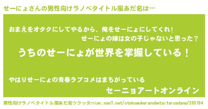 | ヒーロー風カッコイイあだ名 | 『天空の使者せーにょ』『幻影騎士セー』 |