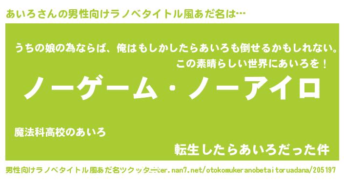 | 意味不明あだ名 | 『眠気覚ましガムあいろ味』『自称あいろ』 |