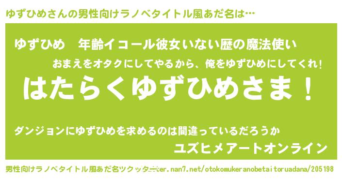 | 胡散臭い通販商品みたいなあだ名 | 『必ず成功するブレスレット…その名も「ゆずひめ」』 |