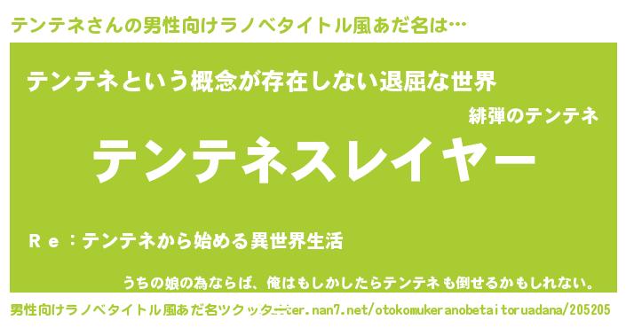 | ヒーロー風カッコイイあだ名 | 『ネオテンテネ』『ウルトラテンテネマン』 |