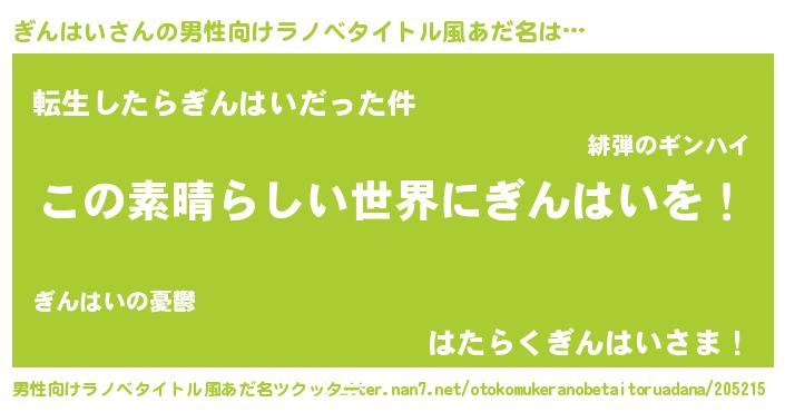 ぎんはいさんの男性向けラノベタイトル風あだ名をツクッター!