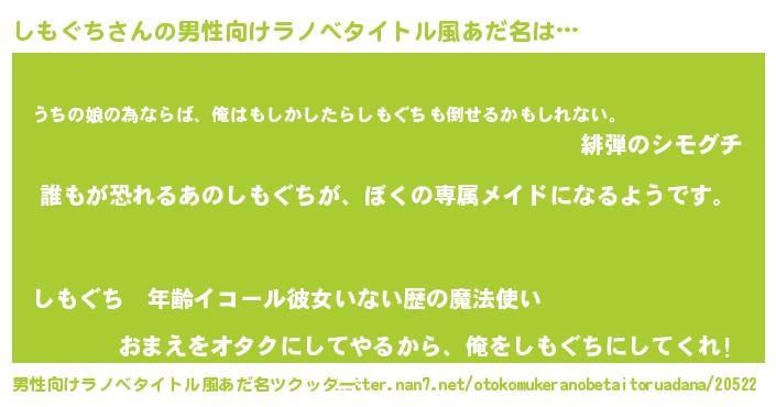 | 胡散臭い通販商品みたいなあだ名 | 『来世でも幸せになれる健康食品…その名も「しもぐち」』 |