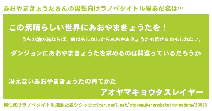 | 女子向けラノベタイトル風あだ名 | 『あおやまきょうたは平凡を望む』 |