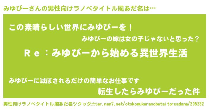 | 意味不明あだ名 | 『自称みゆびー』『もやし科みゆびー属』 |