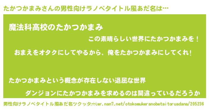 | 女子向けラノベタイトル風あだ名 | 『たかつかまみ恋絵巻』 |