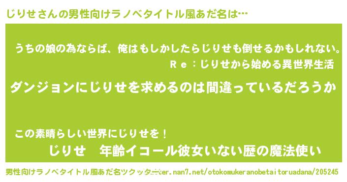| 女子向けラノベタイトル風あだ名 | 『じりせは平凡を望む』『闇のじりせ』 |