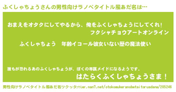 | ヘコむあだ名 | 『ふくもー』『ふくしゃちょう(小並感)』 |