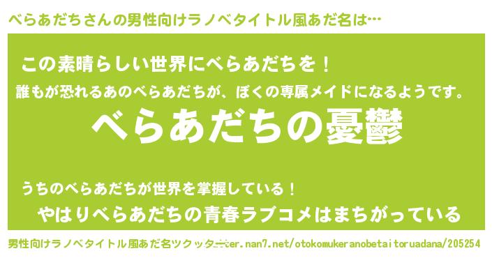 | 胡散臭い通販商品みたいなあだ名 | 『モテモテ間違いなし霊験あらたかなお札…その名も「べらあだち」』 |