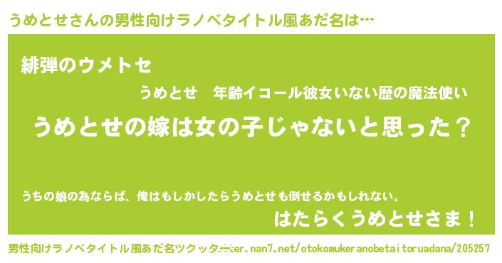 | 女子向けラノベタイトル風あだ名 | 『うめとせ様がみてる』 |
