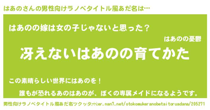 | 女子向けラノベタイトル風あだ名 | 『シンデレラはあの家の靴箱館』 |