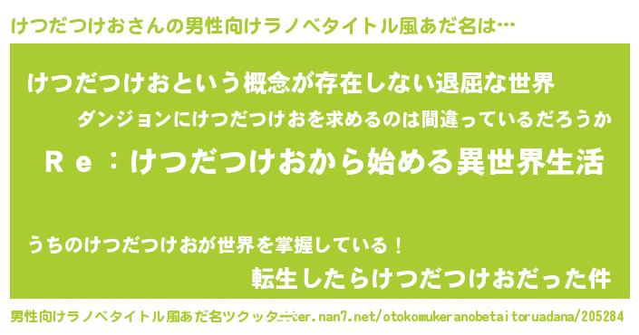 | 女子向けラノベタイトル風あだ名 | 『闇のけつだつけお』 |