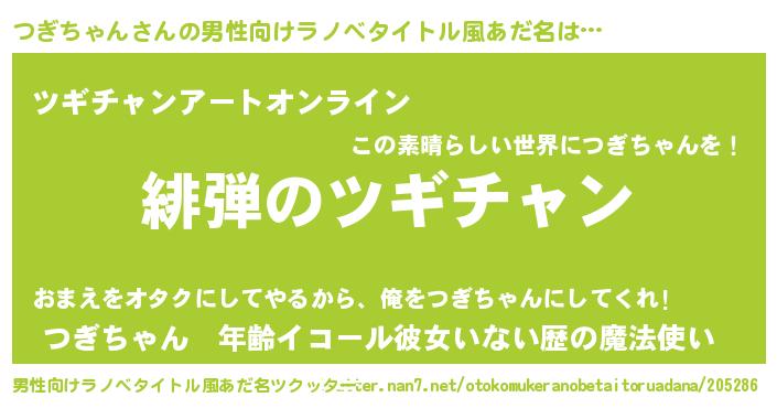 | 女子向けラノベタイトル風あだ名 | 『シンデレラつぎちゃん家の靴箱館』 |